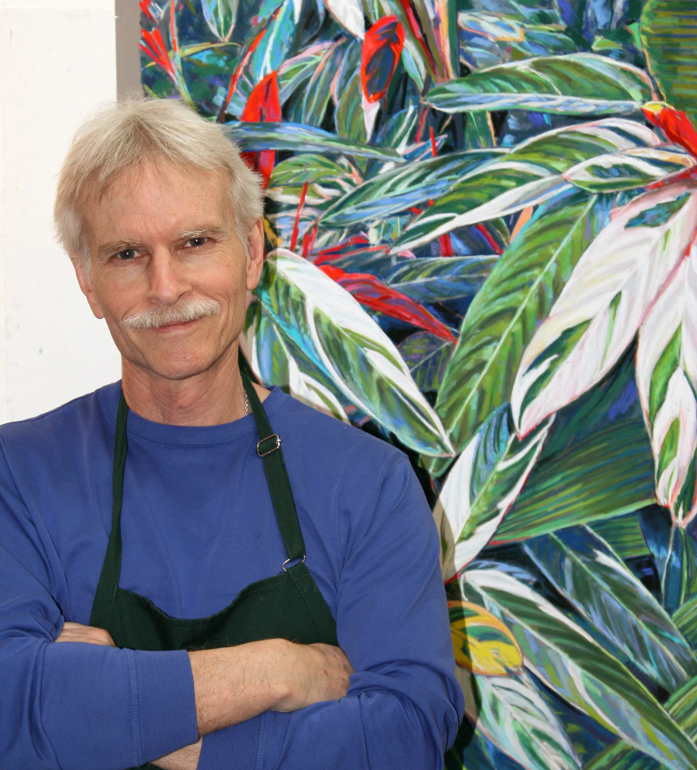 Nick Payne with one of his paintings, Stromanthe sanquinea.